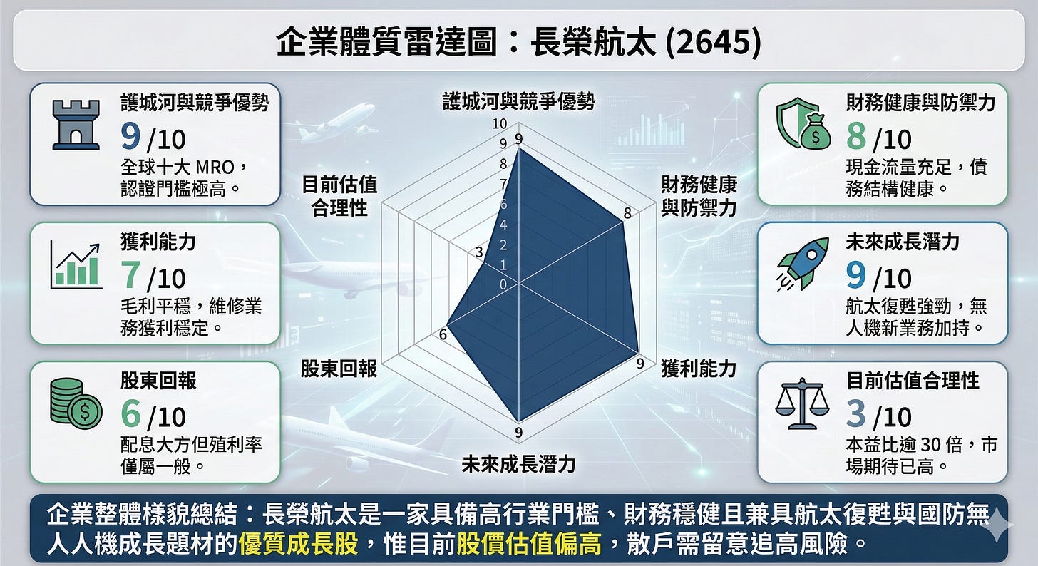 貳、 企業體質雷達圖:長榮航太 (2645) 六大維度深度評估