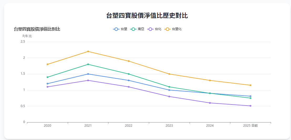 台塑四寶(台塑、南亞、台化、台塑化)正處於歷史性的價值低谷,其股價淨值比(P/B Ratio)已跌至數十年罕見的水平,對價值投資者而言,這構成了一個經典的兩難:究竟是史詩級的投資機遇,抑或是無法自拔的價值陷阱?