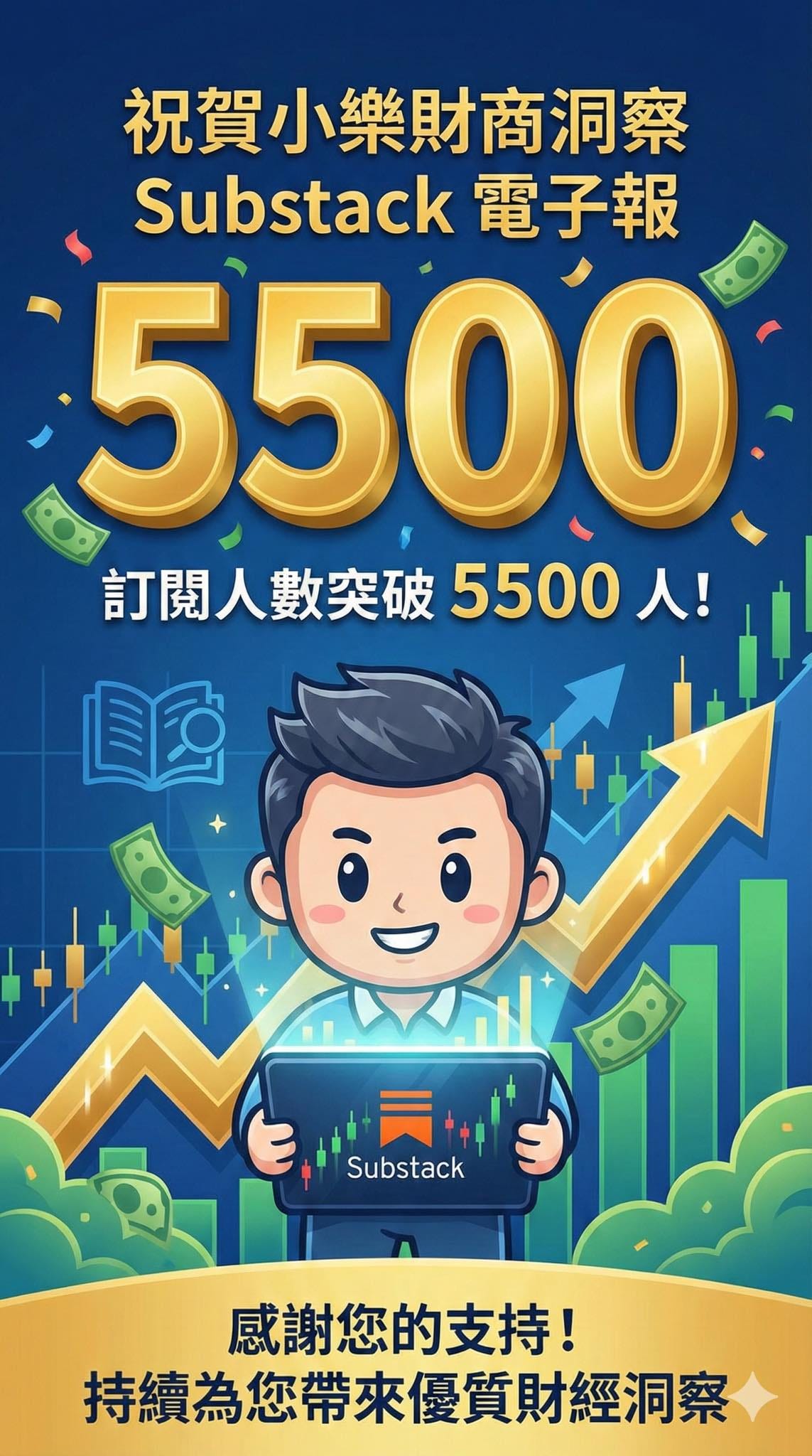 感謝大家的支持,本電子報訂閱人數已突破5,500人!里程碑allenscashflowJan 10, 20264Share非常謝謝大家的支持,讓這裡得到越來越多的關注!今後小樂還是會一如既往地在這裡筆耕,也歡迎多多留言互動喔!PreviousNext
