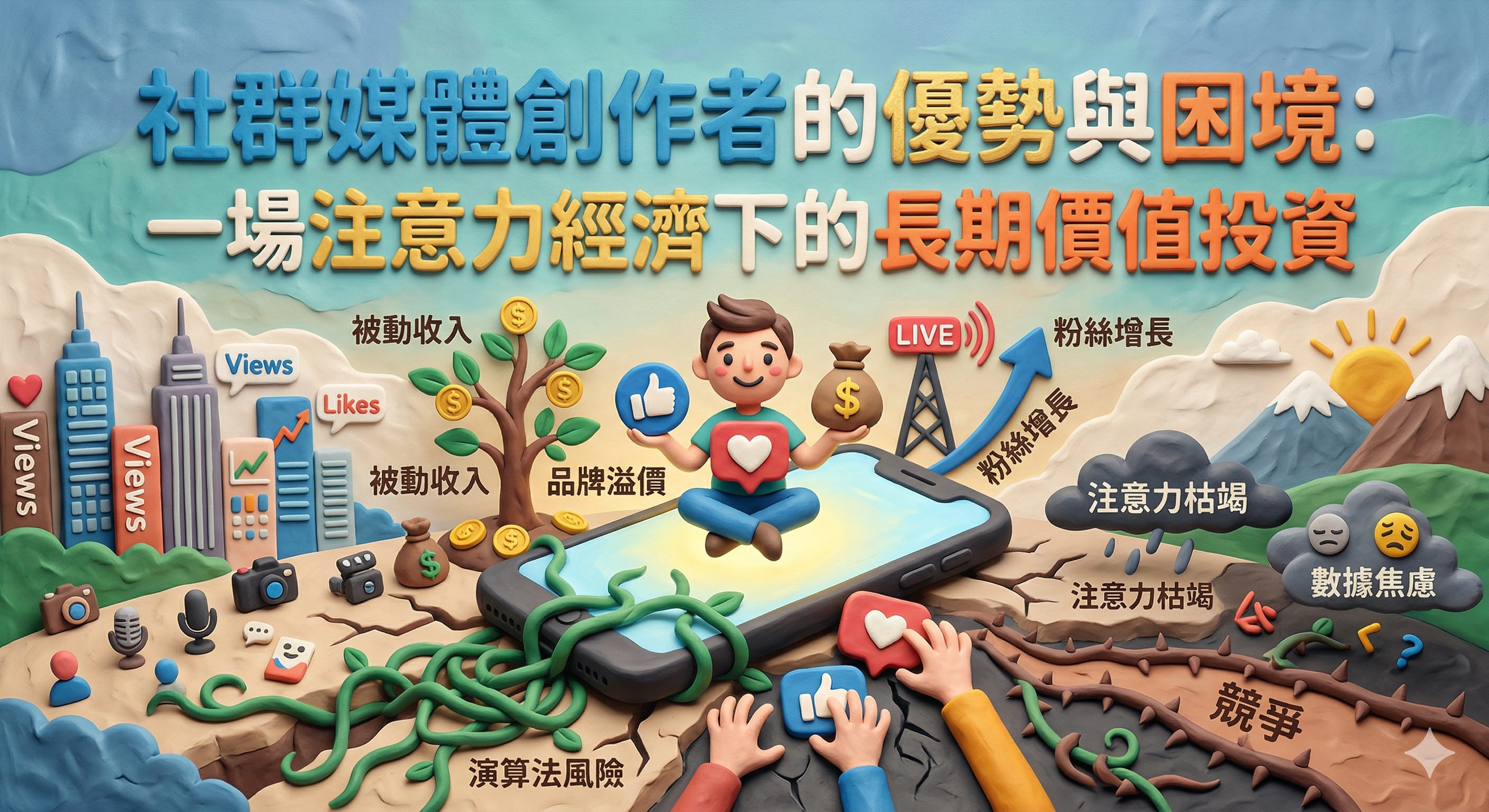 經營自媒體,本質上就是在進行一場人生與資本的「長期價值投資」。這場投資中,有著令人振奮的複利效應與槓桿優勢,卻也潛伏著不容忽視的系統性風險與心智損耗。以下將深度剖析社群媒體創作者所面臨的絕對優勢與殘酷困境。