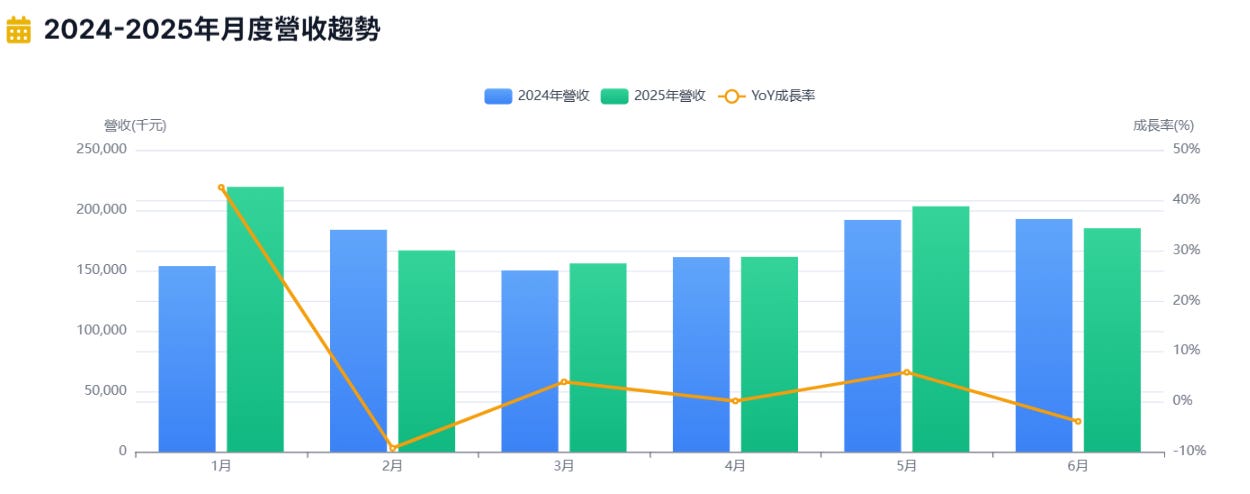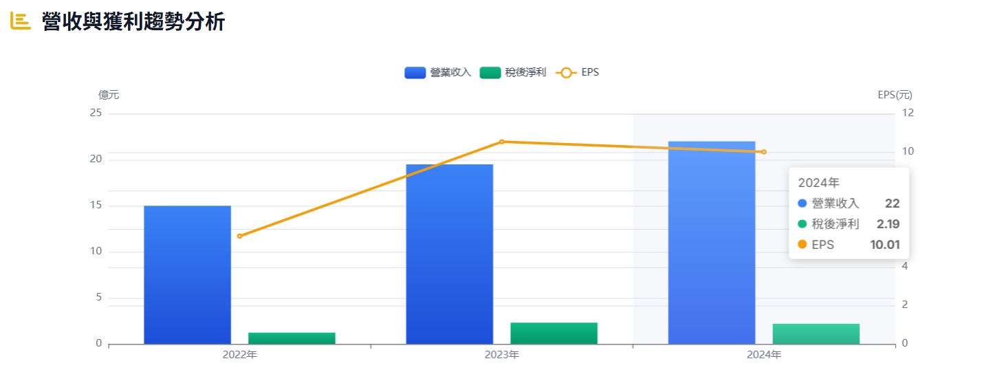 2025年第一季,公司合併營收為5.42億元,稅後淨利3,672萬元,EPS為1.68元;截至6月累計營收達10.93億元,年增5.62%。