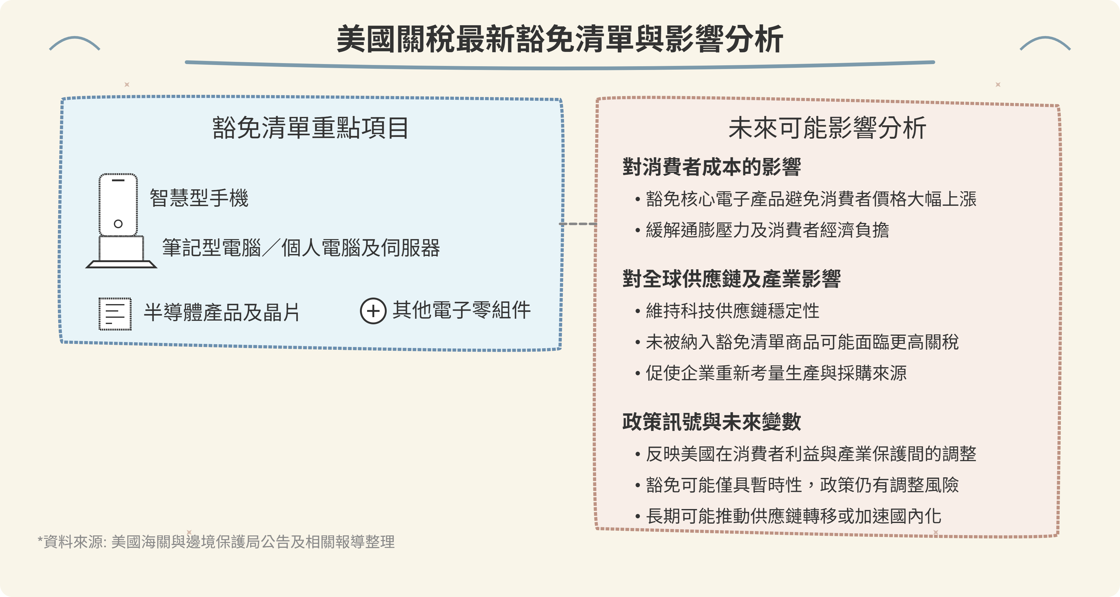大家好,歡迎來到小樂的財商洞察頻道,請訂閱並打開小鈴鐺,就能收到我們製作的最新影片。今天我們跟大家聊的是「美國關稅最新豁免清單及未來可能的影響」,以下是重點整理的內容: