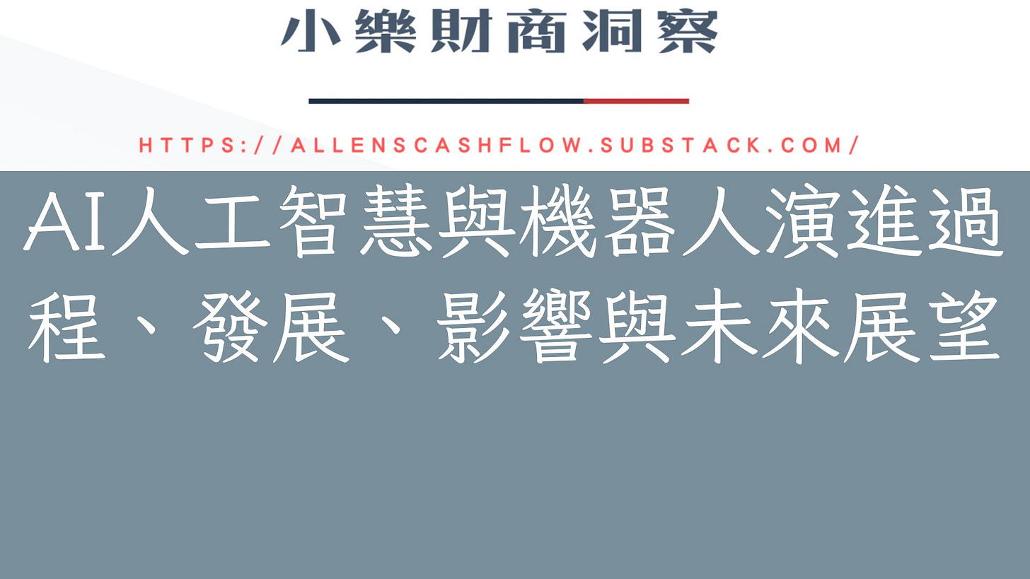 大家好,歡迎來到小樂財商洞察YT頻道,請訂閱並打開小鈴鐺,就能收到我們製作的最新影片。今天我們要討論的議題是「AI人工智慧與機器人演進過程、發展、影響與未來展望」,以下是我們的介紹: