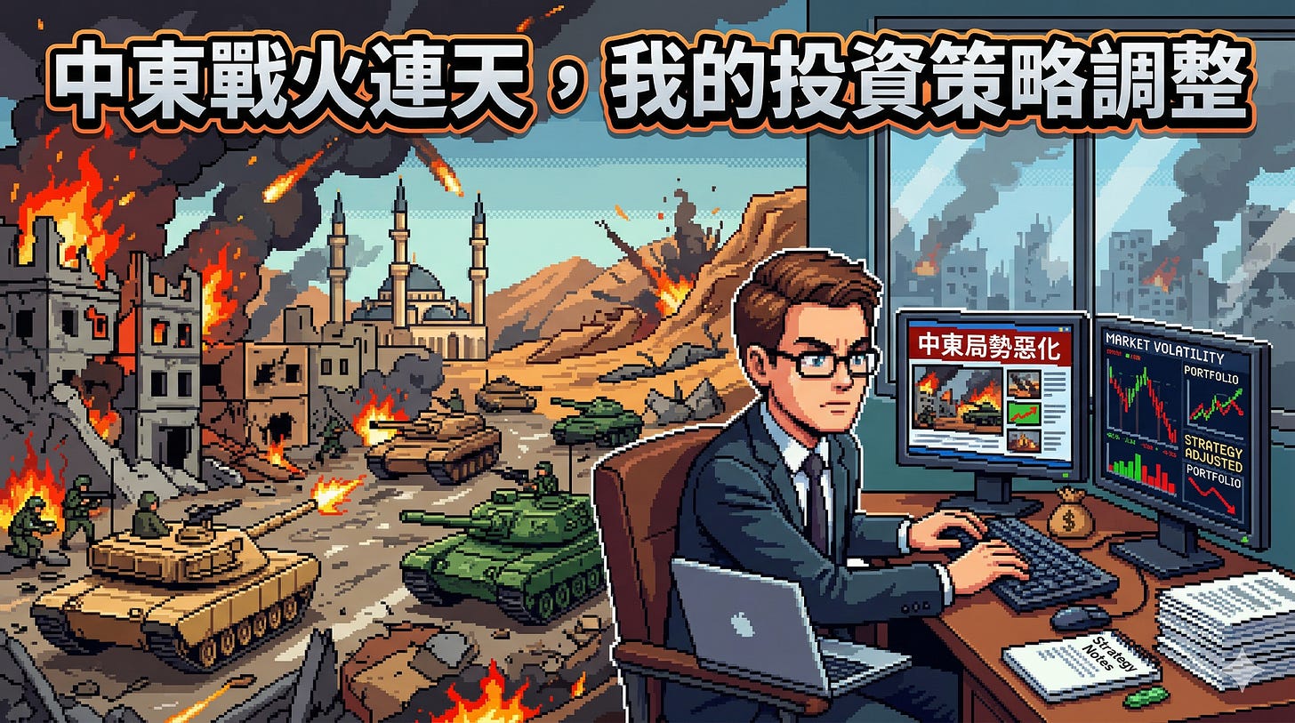 近期,中東地區的戰火再次升級,地緣政治的緊張局勢不僅讓國際社會感到憂心,也讓全球金融市場陷入了劇烈的震盪。看著新聞畫面上不斷閃爍的紅字與股市大盤的跳水,許多投資人的心情想必也跟著七上八下。身為一個經歷過多次市場多空循環的中年大叔,面對這種突如其來的黑天鵝事件,我深知恐慌是投資路上最大的敵人。在這樣的動盪時刻,與其盲目地跟隨市場殺進殺出,不如靜下心來,重新審視自己的投資組合。這篇文章,我想和大家分享在戰火連天的宏觀背景下,我是如何貫徹「攻守兼備」的原則,並對個人的台美股投資策略進行實務上的調整。