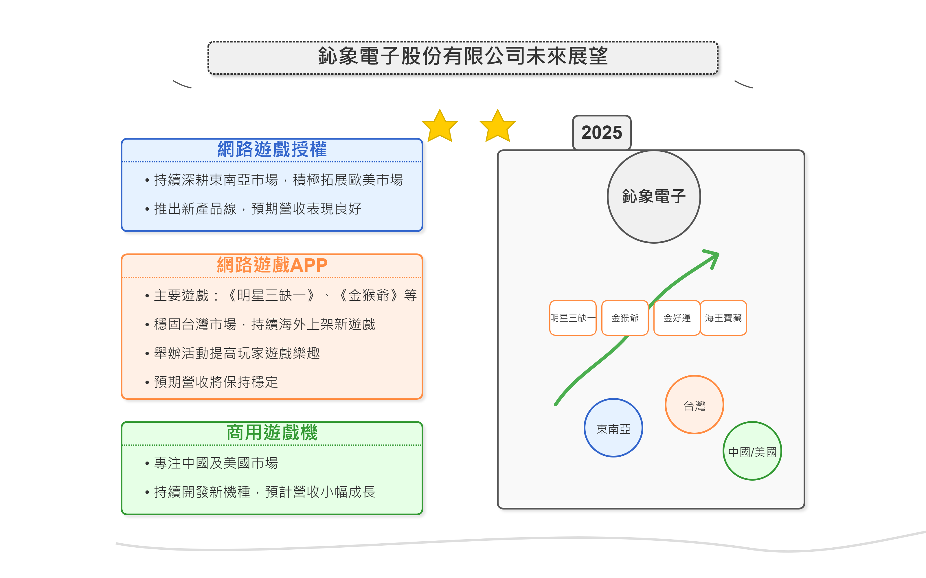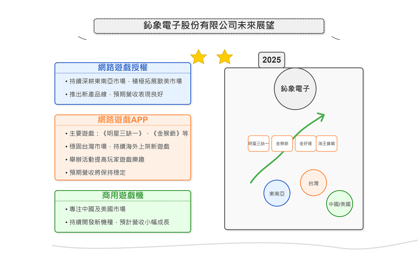 這些重點顯示鈊象電子在未來幾年內的成長潛力及市場策略,特別是在網路遊戲及商用遊戲機領域的持續投入與擴展。