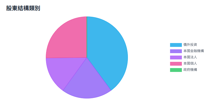 僑外投資合計: 39.9% (包含金融機構、法人、基金及自然人)