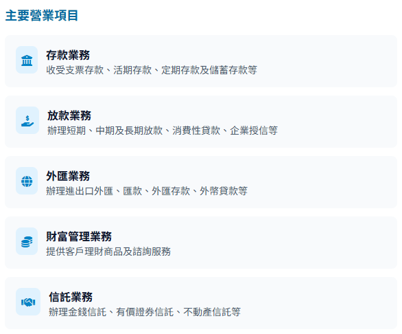 上海商銀的營業項目涵蓋廣泛的商業銀行服務,主要包括: