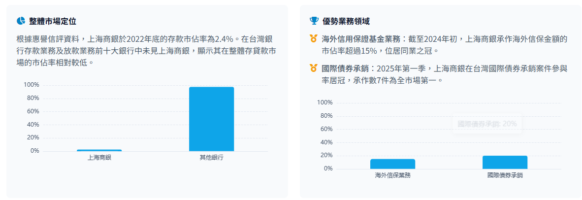 公司在企業金融、中小企業服務及海外信保業務方面具有顯著優勢,其海外信保業務市佔率超過15%,穩居同業之冠 。